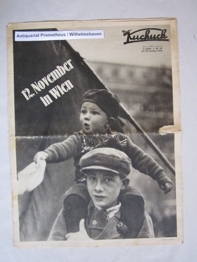 Der Kuckuck nun war ein Blatt der österreichischen Sozialdemokratie und wurden in den knapp fünf Jahren seines Bestehens vor allem von Siegfried Weyr und Julius Braunthal geprägt. Wir müssen das Rad hier nicht neu erfinden: Über die Geschichte des Blattes, die Beteiligten und Fragen wie den Einsatz von Fotographie und Fotomontage informiert ausführlich die 1995 in Wien erschienene Monographie von Stefan Riesenfellner und Josef Seiter: Der Kuckuck. Die moderne Bildillustrierte des Roten Wien. Empfehlenswert.