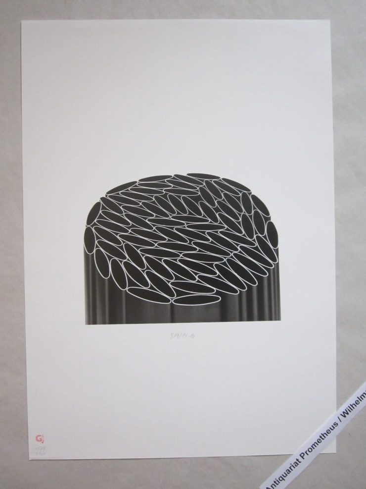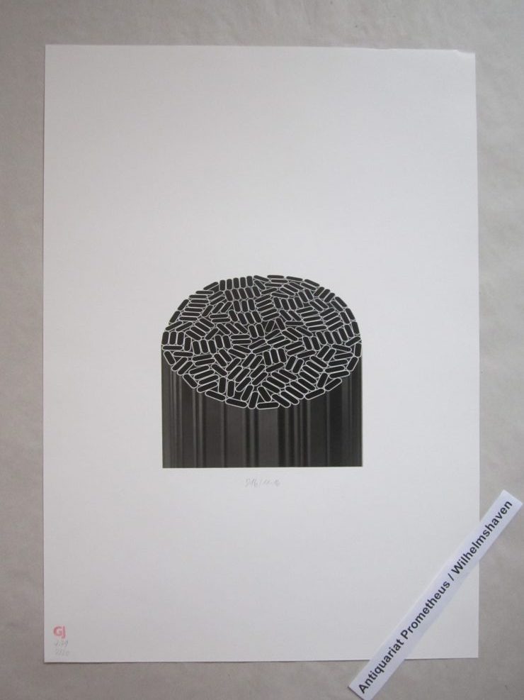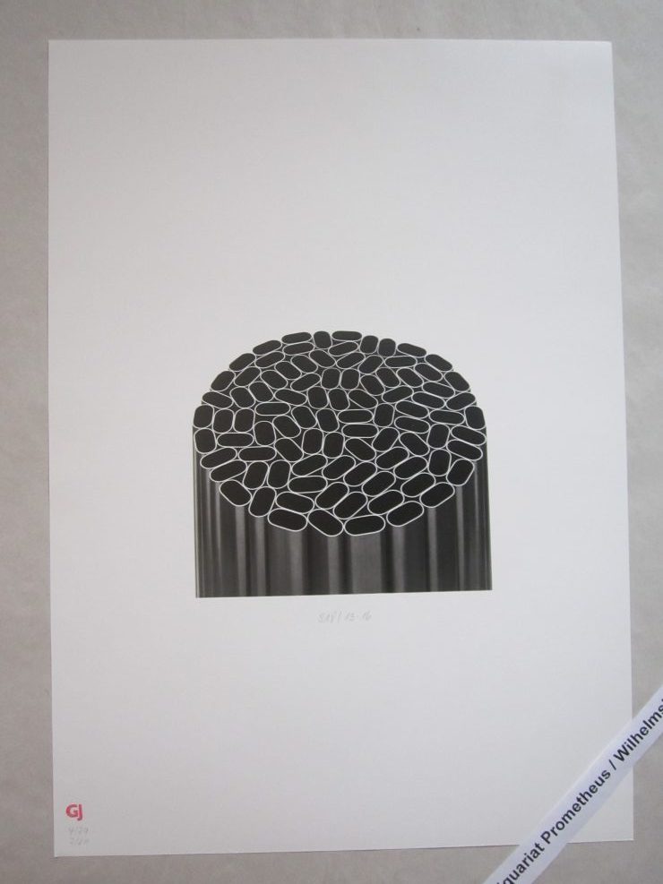 Original-Foto auf mattem Foto-Papier. Blattmaß 42 x 29,5 cm, Darstellung etwa 13 x 13,5 cm. In Bleistift bezeichnet, links unten mit Monogramm-Stempel und in Blei datiert und nummeriert (2 / 20). Die Serie umfaßte 16 Arbeiten und gehört laut Jägers eigener Homepage zur Werkgruppe Kamerafotografien / IV.2-Rohre-1977-79. Gottfried Jäger ist gleichermaßen als Lehrer und Theoretiker der Fotografie wie als Fotograf selbst bekannt, hierbei vor allem für konkrete und generative Arbeiten. Sehr schöne Arbeit. EUR 80,-