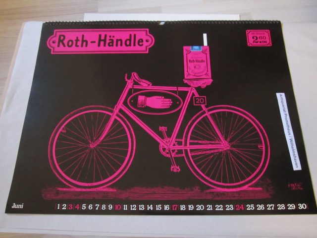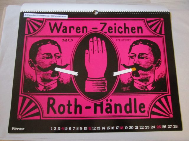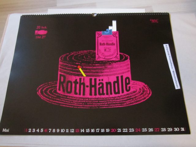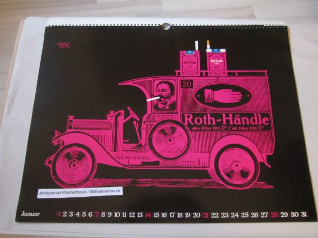 Herbert Leupin (Design): Roth-Händle Plakatkunst-Kalender 1979. Format 45 x 59,5 cm, 13 Blatt + Kartonrückwand, mit Metall-Ringbindung. So komplett. Deckblatt mit kleinem Einriss an der Ringbindung, insgesamt nur geringe Gebrauchsspuren, gutes Exemplar. EUR 200,-